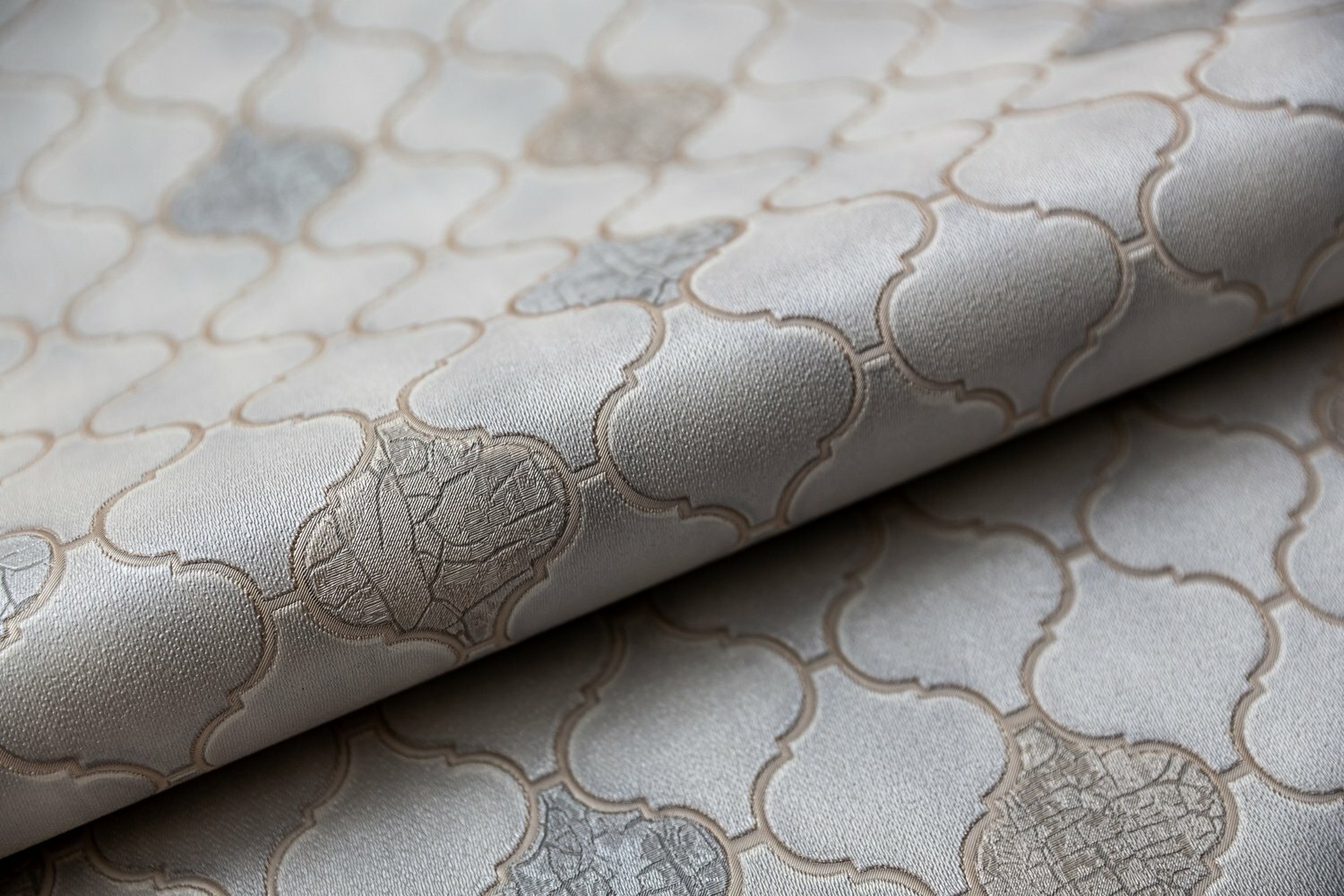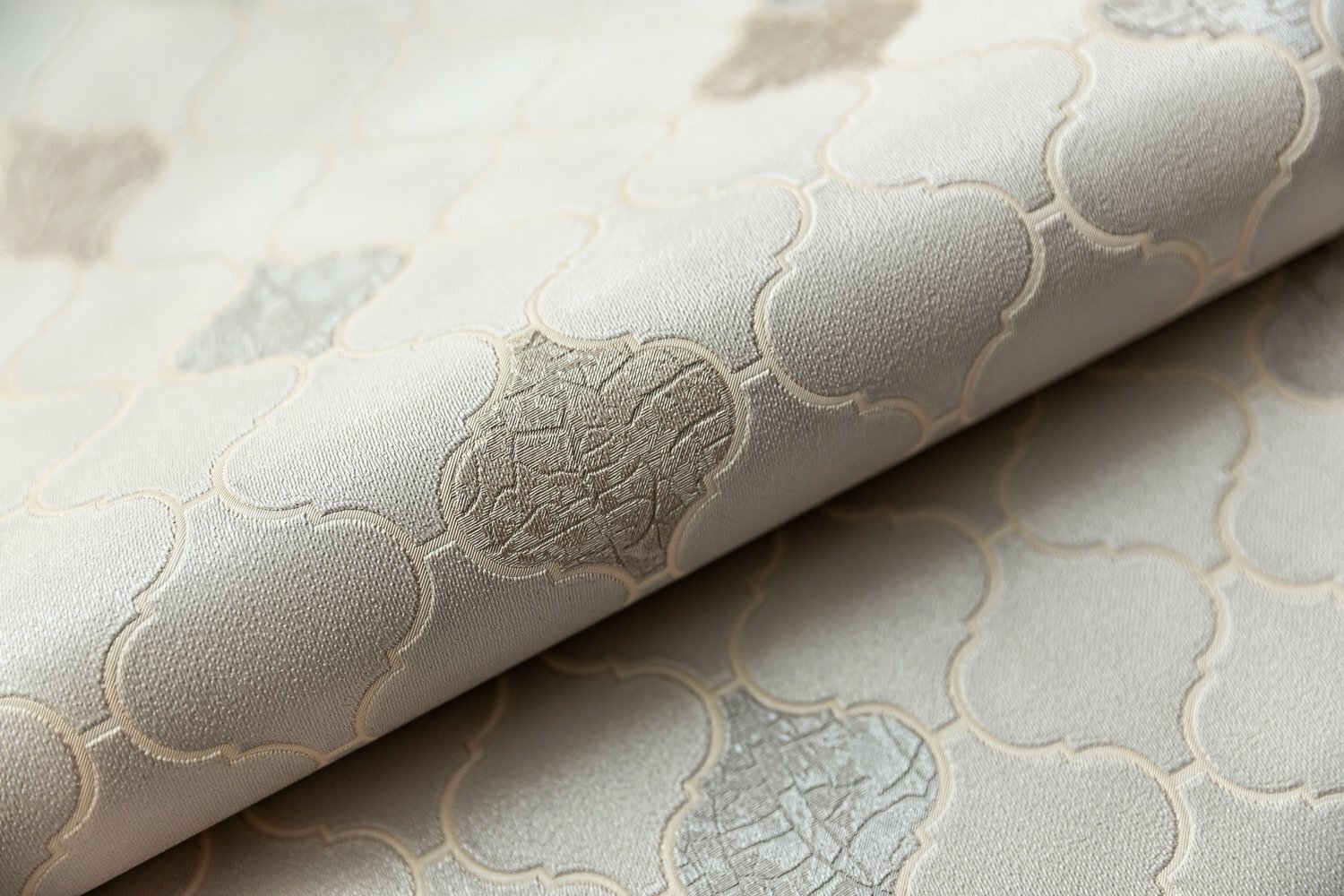 Арабески, заслужившие любовь в керамической мозаике, теперь доступны и в варианте обоев. В некоторых элементах узора заметен эффект кракле — краска словно потрескалась от времени.